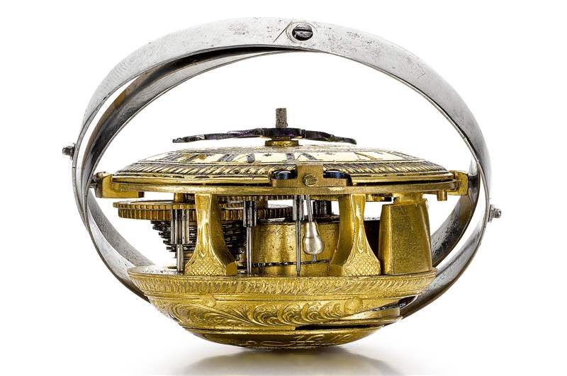 在早期,人們曾嘗試在手表上放置擺錘,但收效甚微。帶邊緣擒縱機構的擺錘式腕表,1680年。