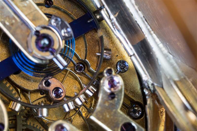 回到基礎。機械表內部 – 枚機械表 – 都是一個主發條,它位于一系列齒輪的一端,這些齒輪將能量一個傳遞到另一個齒輪。主發條盒由開卷彈簧旋轉,并反過來驅動中心輪,第三輪和第四輪。第四個輪子驅動擒縱輪,這是擒縱機構本身的第一部分,擒縱輪和其他擒縱機構組件協同工作,以驅動(或者如制表師所說,給平衡帶來動力)。