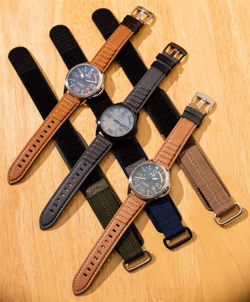 AVI-8 P-51 Mustang Bottisham 限量版手表的三種配色是參考。AV-4069-01 采用黑白表盤,AV-4069-02 采用綠色表盤,AV-4069-03 采用灰色表盤和表殼。每個都很時尚,雖然第一個帶有黑白表盤的版本是最清晰的。AVI-8 包括一個絎縫皮革表帶和一種飛行員/宇航員風格的 Velcro 表帶,這似乎是一個有趣的想法,但卻忽略了很多實用性。