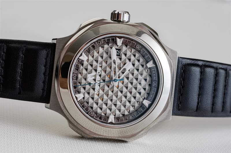 Montfort Strata James 的表盤有很多話要說,因為它是手表價值主張的重要組成部分。Montfort 自豪地宣稱這是一款 3D 打印的金屬表盤——實現(xiàn)了傳統(tǒng)表盤生產(chǎn)技術(shù)無法達到的精度。我不會否認這一點。主表盤有一種巴黎釘釘重復三角形圖案,看起來很酷。廣告訊息廣告信息結(jié)束