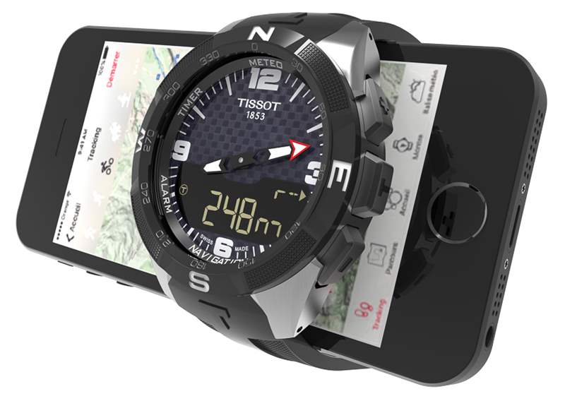 雖然尚不清楚全部連接功能是什么,但天梭正在推動(dòng)兩個(gè)有趣的功能領(lǐng)域,這對(duì)于大多數(shù)其他智能手表來說肯定不常見。首先是導(dǎo)航功能,它將 T-Touch 的指南針功能與智能手機(jī)上的導(dǎo)航和其他 GPS 功能相結(jié)合。如果我們正確理解該系統(tǒng),指針以及 Smart-Touch 表盤上的屏幕將為在城市和自然景觀中導(dǎo)航提供方向和跟蹤功能。天梭吹捧“回家、跟蹤和導(dǎo)航”等功能。“Smart-Touch FindIt”配件提供了部分此功能,該配件是一種可以連接到物體上然后由手表追蹤的鑰匙扣。這對(duì)于找到返回營地的路或跟蹤移動(dòng)物體很有用。