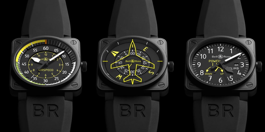 您首先會注意到的當然是這些手表采用黑色和白色搭配黃色裝飾主題。除了添加了更多顏色的 Airspeed 之外(盡管黃色占主導地位)。Bell & Ross 提供了實際儀器的圖像,以便您了解概念如何從駕駛艙到腕表設計。一如既往,柏萊士在“觀察”它們方面做得很好,但易讀性各不相同。我發(fā)現那些最清晰的作品是我最喜歡的作品。所以在這種情況下,我最偏愛空速和爬升,因為航向指示器和雷達一樣容易讀取。不過,如果您喜歡手表上黃色噴氣式戰(zhàn)斗機輪廓的想法,那么這款手表就是您的最佳選擇。