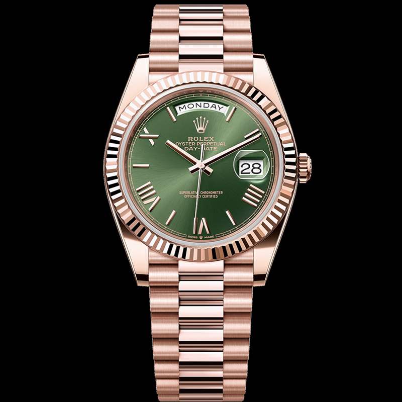 這款特別的 Day-Date 40 毫米腕表擁有令人驚嘆的珍貴材質(zhì)組合,體現(xiàn)了勞力士對完美的追求——從勞力士專有的玫瑰金合金 18 卡丁永恒玫瑰金到綠色表盤,這款腕表散發(fā)著溫暖而奢華的光芒,綠色表盤的顏色在勞力士歷史上一直備受追捧。雖然勞力士多年來為星期日歷型系列提供了多種表盤顏色,但綠色表盤選項尤其受到收藏家和愛好者的歡迎和追捧。