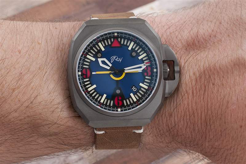 然而,表冠護罩使手表佩戴起來比其 42.5 毫米寬的尺寸讓您相信的要大。表殼也接近正方形,這使得它比圓形手表占用的空間更大(想想對角線測量,就像電腦顯示器一樣)。盡管如此,其無表耳設(shè)計使其適合較小的手腕佩戴,因為表耳至表耳的長度僅為 47 毫米。大多數(shù)人還會發(fā)現(xiàn)其 13.1 毫米的整體厚度也很適合佩戴,20 毫米的表耳寬度意味著您最喜歡的所有表帶都可以裝在上面。