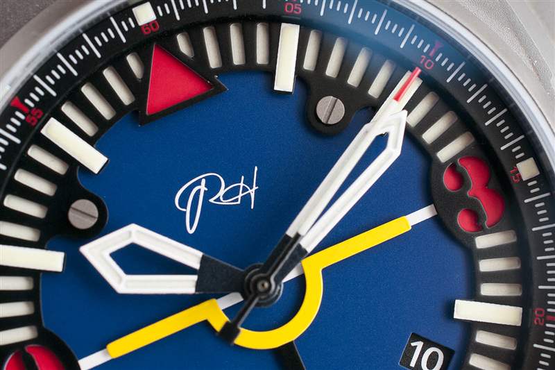 一旦你系上安全帶,盡管表盤上有很多東西,但態(tài)度上的時間還是很容易讀取的。大骨架的手很容易區(qū)分,我發(fā)現(xiàn)黑色的中心讓它們看起來很干凈。黃色地平線指示器還可以讓您在觀看手表時輕松快速確定方向。
