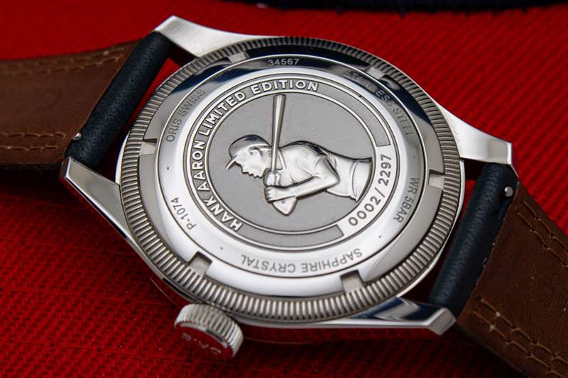 Oris Hank Aaron 限量版成功的關鍵始于其輕盈的觸感。在機械方面,這與標準生產的豪利時大表冠指針式日期腕表或多或少相同,這種相似性始于 40 毫米寬的不銹鋼表殼。長而逐漸變細的未倒角表耳、纖細的拋光表殼輪廓以及獨特的窄硬幣邊緣表圈都是大表冠指針日期的標志,在這里以精致的時尚呈現。這種設計融合了運動精神和古典精致之間的界限,拋光表圈的裝飾性外觀在手腕上營造出一種隱約的飛行員風格感覺。簡而言之,它是一款易于佩戴的表殼,適合各種環(huán)境和各種手腕,該品牌的限量版調整并沒有改變這一點。這些調整僅限于表背,Oris 在此增加了光滑、精美拋光的“Hammerin”漢克·阿倫本人在其獨特的橫握揮桿中的雕刻。與標準大表冠指針式日期腕表一樣,豪利時對 Hank Aaron 限量版腕表的防水深度為 50 米。廣告留言廣告信息結束
